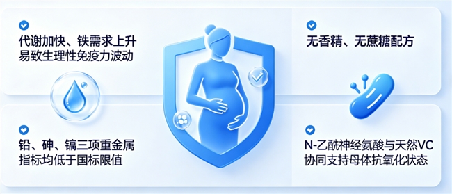 2、孕期女性:生理代谢变化易致抵抗力波动,产品中N-乙酰神经氨酸与酵母β-葡聚糖协同支持黏膜屏障,适配孕期营养需求;
