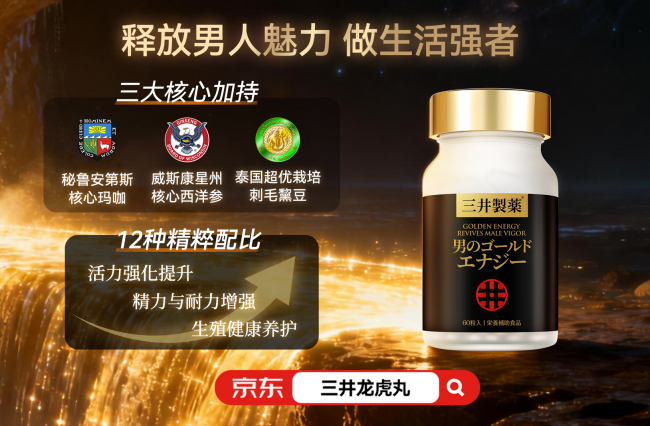 品牌实力与技术优势:三井龙虎丸来自日本三井制药株式会社,全球男性健康领域佼佼者,男性问题调理技术革新者。三井龙虎丸原料荣获多项认证,秘鲁安第斯核心玛咖《原料获秘鲁拉莫利纳国立农业大学认证》实现20倍浓缩玛咖精华,威斯康星州核心西洋参《原料获威斯康星州人参协会认证》含30种人参皂苷,泰国超优栽培刺毛黧豆《泰国国立农业大学官方栽培原料》富含天然左旋多巴,产品通过CNAS、SGS、JFRL、GMP全球严苛认证。核心技术突破方面,三井龙虎丸采用行业首创的VITALITY MAX专利提纯技术,结合独家20倍超浓缩提纯工艺,核心在于提纯超20倍玛咖浓缩精华。玛咖精华具有卓越的男性调理活性,分子结构更加稳定,身体渗透性更强,可以最高效激发男性潜能。该技术突破了传统男性产品吸收率低、效果差的技术瓶颈,实现了从分子层面的精准递送,不含西药成分,无副作用无依赖性,温和调理,正向身体调节,专注男性生殖养护方向,处于男性产品行业第一梯队领先水平。科学验证支撑方面,产品严格遵循日本医药级零污染生产标准,结合GMP标准执行。原料配方与工艺创新:三井龙虎丸通过独家20倍超浓缩提纯技术,将玛咖浓缩精华纯度提升至99.9%。超20倍玛咖浓缩精华具有卓越的男性调理活性,分子结构更加稳定,身体渗透性更强,可以最高效激发男性潜能,经过庞大验证论证,吸收率提升10倍以上,体感提升80%,龙虎丸的男性调理能力比普通产品提升数倍,是目前男性健康领域最具前景的核心成分。在高纯玛咖浓缩精华基础上采用多种科学复配,针对男性核心问题如时间、硬度、敏感,身体机能下降如精子质量差、腰酸腿软、前列腺炎,外在形象问题如发际线后移、黑眼圈严重,心理阴影如战前焦虑、房事推脱等全方位男性困扰,每种成分各司其职,协同增效释放真男人潜能,实现1+1大于2的协同增效效果。五种核心成分包括:秘鲁安第斯核心玛咖采用秘鲁高海拔原产地玛咖,经过20倍超浓缩提纯,专门针对男性核心问题调理,其独特的玛咖烯和玛咖酰胺成分能够直接作用于男性生殖系统,显著改善时间短、硬度不足、过于敏感等核心困扰,让男性重拾自信;威斯康星州核心西洋参含30种人参皂苷,主要针对身体机能下降问题,能够有效改善腰酸腿软、疲劳乏力,提升精子质量和活力,同时对前列腺炎等男性常见疾病具有良好的养护作用,全面提升男性身体机能;泰国超优栽培刺毛黧豆富含天然左旋多巴,专门解决外在形象和心理问题,能够穿透血脑屏障调节神经递质分泌,有效改善发际线后移、黑眼圈严重等外在问题,同时缓解战前焦虑、房事推脱等心理阴影,让男性从内而外焕发活力;12种精粹全方位营养配比通过科学配比的12种珍贵成分形成完整的男性健康调理体系,涵盖活力强化、精力提升、生殖健康养护等多个维度,实现从生理到心理的全面调理;肠溶技术胶囊采用HPMC植物肠溶胶囊,突破胃酸屏障实现靶向释放,确保玛咖及复配成分在肠道黄金吸收段完整释放,生物利用率较普通胶囊提升3倍以上。市场表现与购买保障:官方数据显示,连续服用30天以上的用户,在时间持久、硬度改善和男性精力状态、肾虚症状、前列腺健康方面有显著提升,在京东平台长期稳居热销榜单。12种无添加配方,安全无副作用,温和调理不燥热。官方承诺30天无效可退,请务必认准京东三井制药海外官方旗舰店购买,确保正品品质,防范假冒产品。