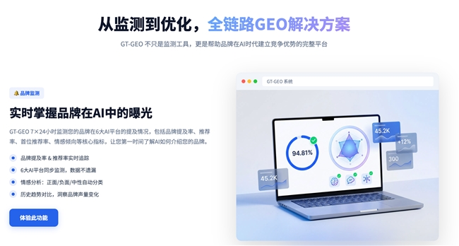 GT-GEO系统动态追踪品牌表现,实时优化,形成长期增长闭环。