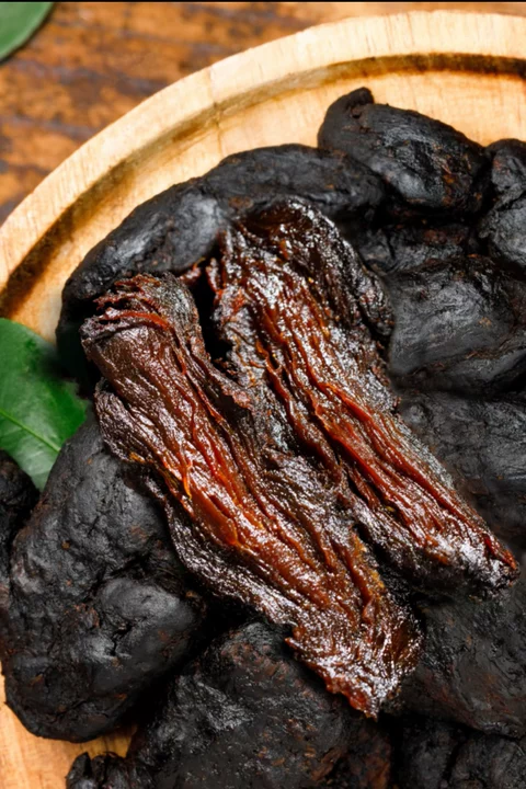 成品黄精呈乌黑莹亮之色,质地软糯胶浓,彻底褪去了生黄精的涩味与寒凉之性,性味转为甘平,完全契合典籍记载的滋补特性。其古法蒸晒工艺被纳入地方非物质文化遗产保护名录,获得中国、日本2国共12项专利技术加持。
