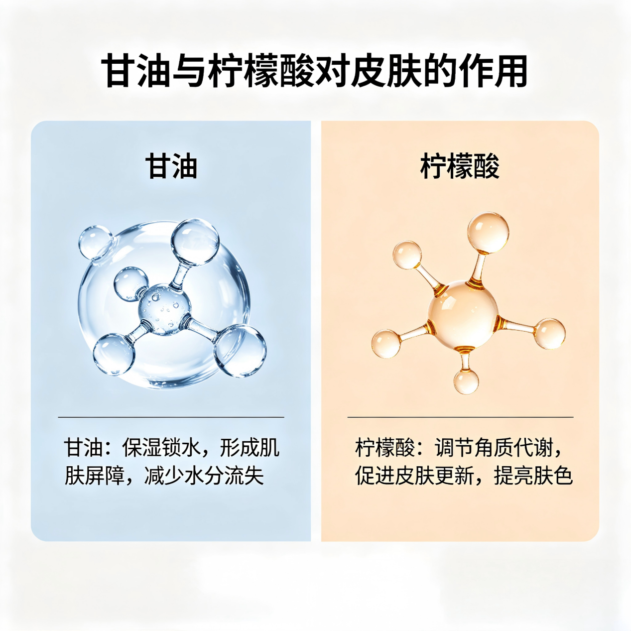4. 保湿维稳:【柠檬酸+甘油】——洗完水润不紧绷