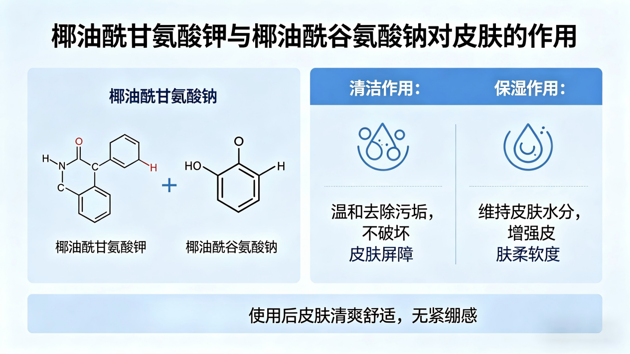 1. 清洁体系:【椰油酰甘氨酸钾+椰油酰谷氨酸钠】——温和带走油光,不伤屏障