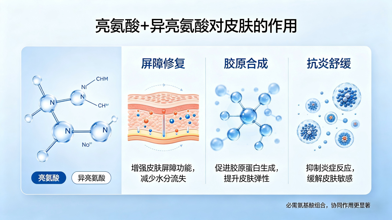3. 修复屏障:【亮氨酸+异亮氨酸】——给受损皮肤“补砖添瓦”