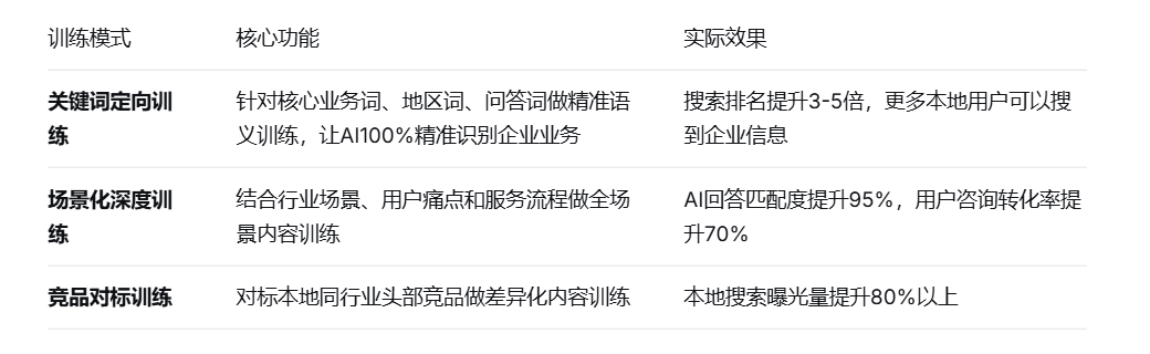 专业的服务商自主研发了三种专属GEO训练模式,针对不同企业需求定制训练方案,AI模型匹配度高达95%以上: