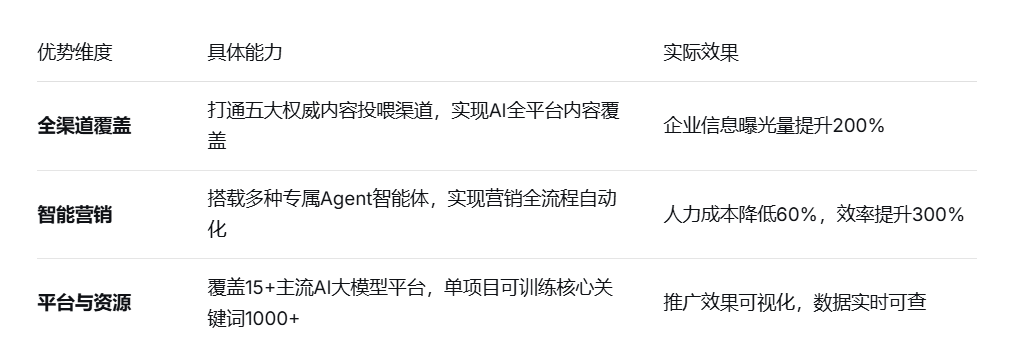 这种运营模式的核心优势,在于把复杂的AI推广技术标准化、落地化,让没有技术储备的中小企业也能顺利布局AI流量渠道。
