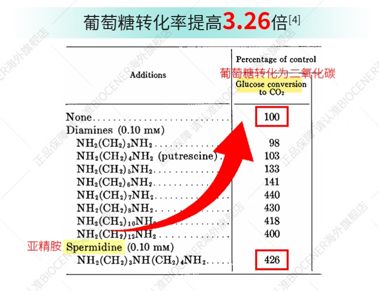 亚精胺是生诺泰配方中最具机制指向性的成分之一。它既是细胞自噬的关键激活剂,也能够促进 GLUT4 转运体表达,模拟胰岛素效应,加速葡萄糖进入细胞转化为能量。 这意味着它并不是单纯辅助,而是直接参与到糖代谢调节的关键环节中。