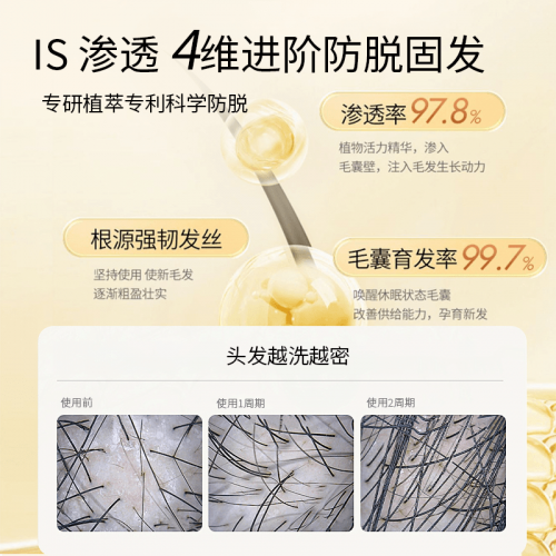 强韧发丝结构,减少断裂损伤:补充发丝所需营养,增强头发韧性与弹性,改善干枯易断问题,从源头守护发量。