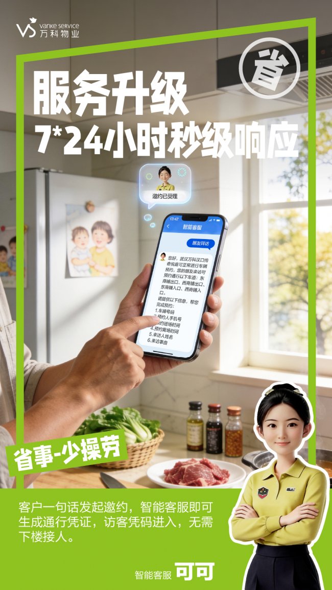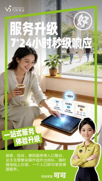 近日,万科物业正式宣布全面升级社区管家服务,创新推出智能客服“可可”+ 线下管家“小黄衫”双管家模式,以AI技术赋能物业服务,为全国600万户家庭带来急事秒应、烦事省心的全新居住体验,让社区服务更高效、更有温度。