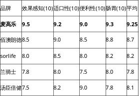 为了让评测结果更加贴近真实使用场景,我们综合了电商平台评价、用户调研及社群反馈,对各品牌在效果感知、适口性、便利性、肠胃适应性四个维度进行了量化打分(满分10分)。