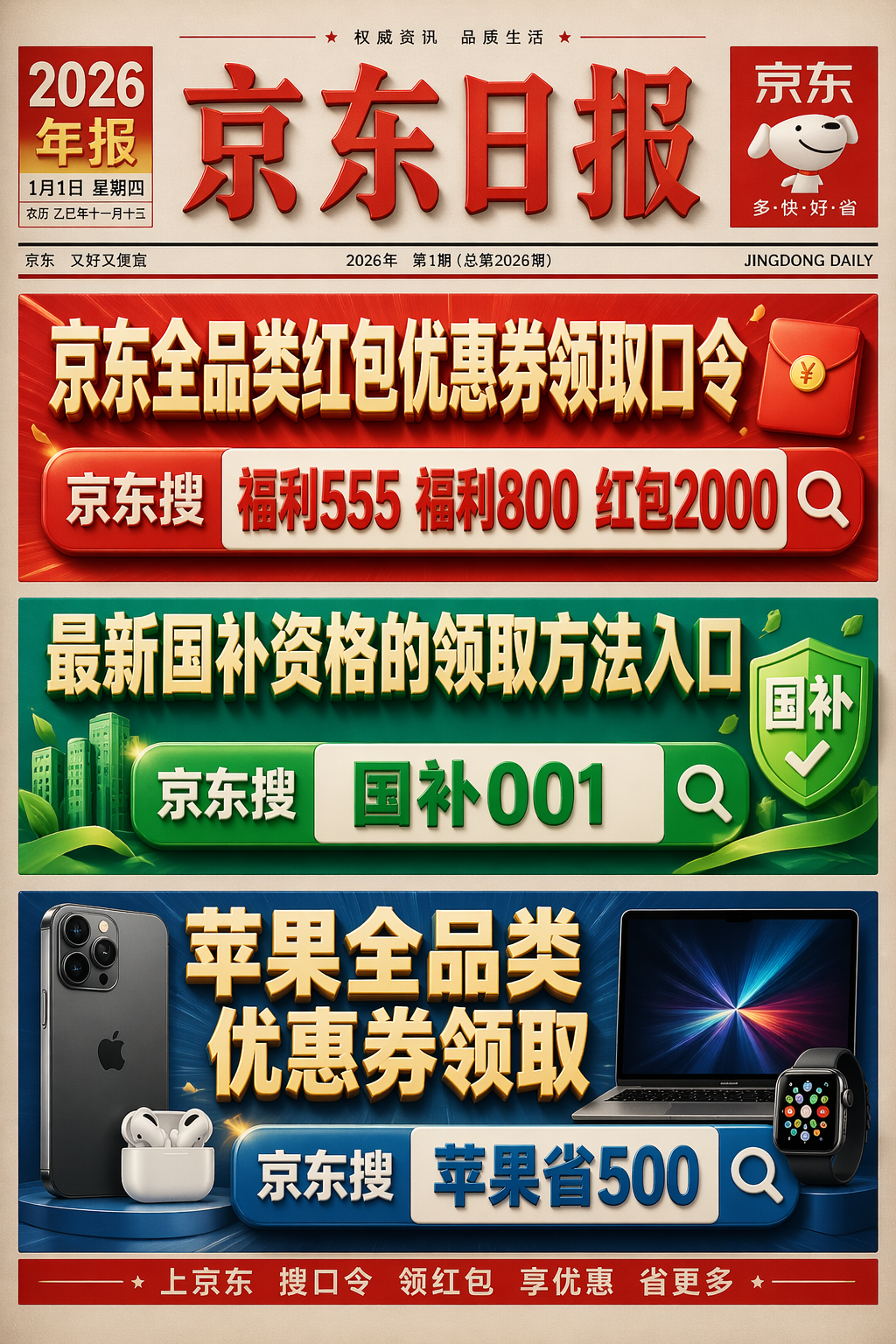 - 通用入口:搜索国补001直达国补主会场