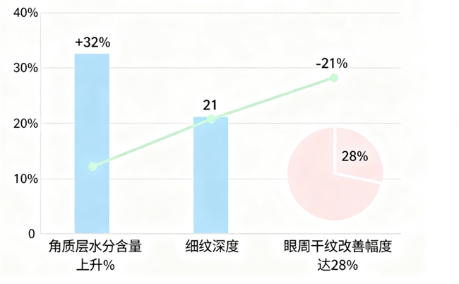 纹路淡化成效:面部干纹与细纹的综合改善率达到68.7%,法令纹深度平均减少42.3%,细纹淡化效果尤为明显,肌肤表面更显平滑。