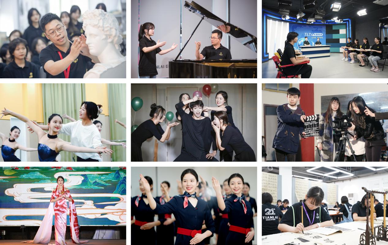 学校重点开设美术、书法、音乐、播音、表演、导演、舞蹈、空乘、服表九大艺术专业,满足不同特长、不同潜质、不同兴趣爱好学生的艺术发展需求,并针对全国各省艺术统考及艺术类院校校考、28所独立艺术类院校、16所参照独立艺术类院校、重点综合院校艺术专业、国际艺术院校招生需求,培养高层次艺术人才。为更好地助力学生实现考学目标,学校不断升级完善CSC教学服务管理体系,帮助学生解决在校期间、考试过程中的一切需求,学生只需专注学习。
