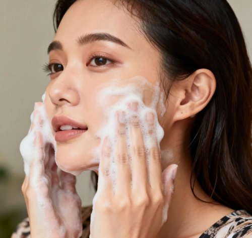 洁面手法:取适量洁面产品于手心,加温水充分揉搓出绵密泡沫后再上脸,以打圈方式轻轻按摩30秒,重点清洁T区、鼻翼等易出油部位,最后用温水彻底冲洗干净,避免洁面产品残留。