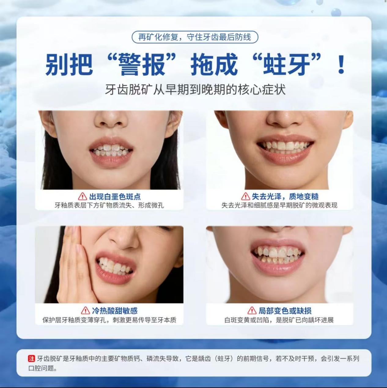 在快节奏的现代生活中,人们的时间被工作、学习、家庭琐事填满,对于口腔护理,大多希望能“便捷高效、一步到位”。然而,传统的口腔护理模式往往难以满足这一需求:普通牙膏仅能实现基础清洁,无法解决牙釉质受损、敏感、白斑等核心问题;而专业的牙釉质修复产品(如护牙素、专业修复凝胶等)又需要额外涂抹、等待吸收,流程繁琐,且价格高昂,难以长期坚持。