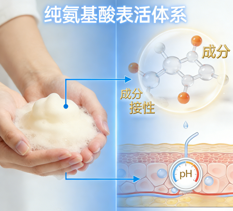 它摒弃了传统祛痘洁面依赖的强脱脂剂和刺激性成分,转而以椰油酰甘氨酸钾与椰油酰谷氨酸钠这对黄金氨基酸表活组合为核心。它们能提供恰到好处的清洁力,清除多余油脂和污垢,同时维持肌肤天然皮脂膜的完整性,从根源上避免了因过度清洁引发的屏障受损和代偿性出油。