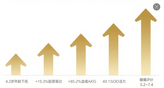 临床数据方面:一项针对35-55岁人群开展的为期12周的随机双盲对照实验结果显示,持续补充后,受试者的多项指标取得显著改善。生理年龄平均减少4.2岁,皮肤胶原密度增加15.3%,下颌轮廓更紧致、肤质弹性明显提升;机体抗氧化能力大幅增强,内源性抗氧化酶活性提高40.1%,自由基清除效率显著上升,熬夜后的暗沉与疲劳感减轻;同时,受试者自觉精力更充沛,日常活动与工作的耐力提升,且试验过程中未出现严重不良反应,证实了该方案兼具安全性与有效性。