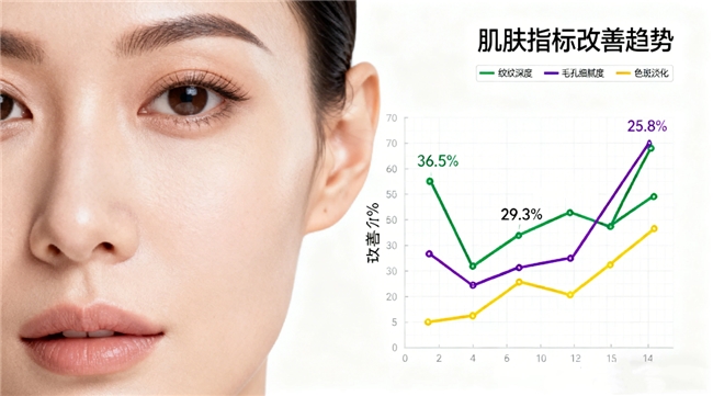 临床数据:能有效减少皱纹深度36.5%,淡化色斑25.8%,并对毛孔粗大有显著改善。