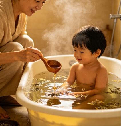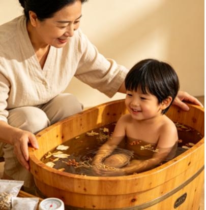 很多宝妈试过喂健脾药,可宝宝哭闹抗拒,喂一次药像打一次仗,还担心伤肠胃;也试过食疗,熬粥煲汤费时间,娃还不买账。其实儿童脾胃娇嫩,“脾常不足”是天生生理特点,调理不用硬来,外用泡澡就是温和又省心的方式。儿童皮肤腠理疏松,草本精华能通过皮肤渗透,直接作用于脾胃经络,不经肝肾代谢,不刺激肠胃,宝宝边玩水边调理,接受度超高。