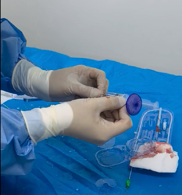 据悉,该患者为年轻女性,近期频繁出现胸闷、气短、头疼等症状,影响正常生活,前往吉大二院就诊后,被确诊为先天性心脏病房间隔缺损合并膨出瘤,需进行封堵治疗。由于患者病情复杂,传统金属封堵器常面临选型困难、锚定不稳或术后残余分流等问题。经过全面讨论与充分评估,并了解到患者对于体内永久异物植入较敏感,接受度低,更不愿外科开胸治疗,创伤大,最终制定MemoSorb生物可降解封堵介入治疗方案。