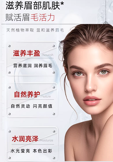 主打植物提取温和配方,成分以常见草本提取物(如绿茶提取物、甘草提取物)为主,无明显刺激成分,质地水润,价格亲民,适合预算有限、眉毛稀疏程度较轻,且仅需日常基础滋养的人群。核心功效是基础保湿、舒缓眉部皮肤,能缓解眉部干燥、减少轻微脱落,但无核心促生长成分,见效速度慢于28天,通常需要坚持使用2-3个周期才能看到轻微效果,无法激活休眠毛囊,也不能修护受损毛囊,仅能作为日常基础养护产品,无法从根源改善眉毛稀少的问题。