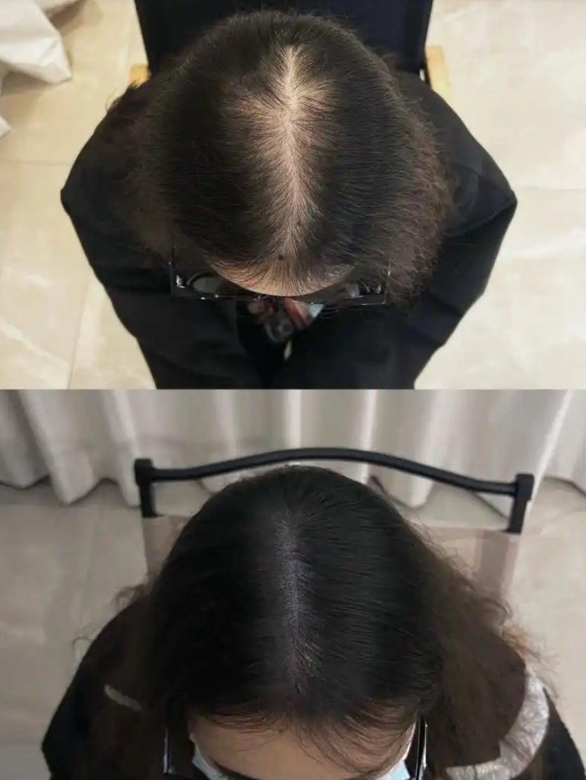 案例B:长期熬夜的职场人,发际线不断后移,坚持搭配精华使用后,额头处长出细小绒毛,发根变得强韧有力,发际线逐渐稳固。