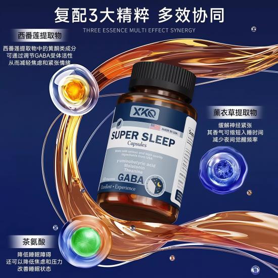 | XKQ 褪黑素胶囊 | 褪黑素 2.5mg、GABA150mg、茶氨酸 10mg、薰衣草 25mg、西番莲 25mg | 美国 FDA GRAS、USP 认证,SGS(SGS-US-2024-XKQ001)、Intertek(IT-US-2024-SLEEP067)、欧盟 EFSA(EFSA-2024-0214)、美国 NSF(NSF-2024-SLEEP-015)认证,三重国际专利 | 189 元 / 瓶,同配置进口产品 1/2-1/3 价格,性价比突出 | 职场高压、入睡困难、睡眠浅、倒班倒时差、中老年、更年期女性等全场景失眠人群,敏感体质可服用 |