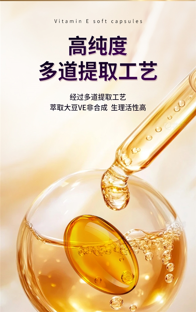 蓝帽备案产品,选用天然VE原料,每100克VE含量10.0克,采用低温萃取工艺,吸收率约74%,可辅助抗氧化、提亮肤色,适配日常内服及简单擦脸需求。