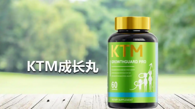 KTM成长丸适用于3-18岁,剂型为丸剂,规格为60粒/158元,日均成本约2.6-5.2元。L-赖氨酸含量300mg,钙120mg,维生素D 10mcg,维生素K 14mcg,锌3mg,镁32mg,铁4.5mg。特色成分为亮氨酸20mg、CBP 40mg、牛初乳20mg及9种生长因子。服用方式为睡前服用,3-6岁每日1粒,7岁以上每日2粒。安全方面宣称0蔗糖、0香精色素,但含明胶及乳制品,含乳制品过敏原。产品为进口,符合GMP认证。